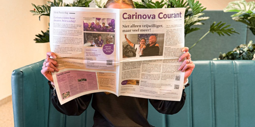 Wij zijn Carinova. Een grote zorgorganisatie in Zuidwest- en Noord-Overijssel. Binnen 9 gemeenten geven we zorg, praktische hulp en begeleiding. Dat doen we bij mensen thuis of op onze woonzorglocaties. Ook bieden we huishoudelijke hulp. Met bijna 4.000 collega’s en zo’n 1.000 vrijwilligers helpen en verzorgen we meer dan 12.000 cliënten. Daarbij mogen we hun onmisbare mantelzorgers niet vergeten. Welzijn thuis heeft onze volle aandacht, meer dan 25.000 mensen maken gebruik van onze ledenservice. Daarmee maken we zelfstandig thuis wonen mogelijk, zo lang als dat kan, samen met de teams in de wijk en in de regio.