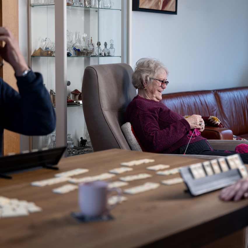Zo ontstaat er ruimte. Voor spelletjes, fietsen, eigen tijd en voor breien. Want Gettie is niet alleen mantelzorger. Ze is ook gewoon zichzelf.