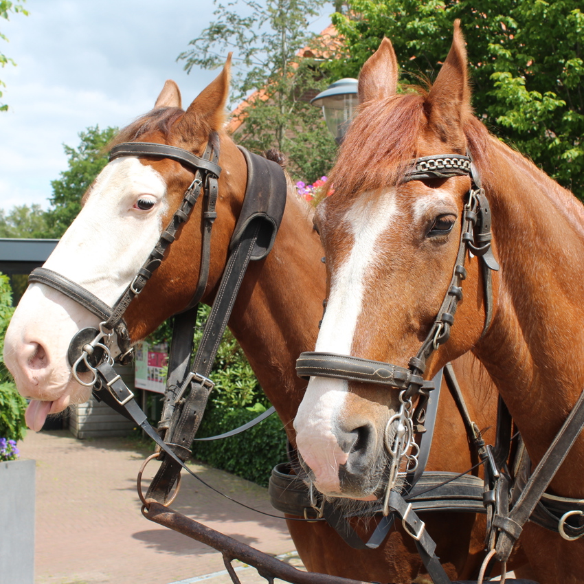 Aangekomen op de bestemming staan er 2 huifkarren met 4 trappelende paarden te wachten voor een rondrit door de prachtige omgeving van Hoonhorst. Ook met de rolstoel is dit uitje prima te doen, daar hebben de medewerkers duidelijk goed over nagedacht. Boven het klinkende geluid van hoeven op asfalt klinkt de stem van de paardenmenner. Hij vertelt herkenbare verhalen over de omgeving.